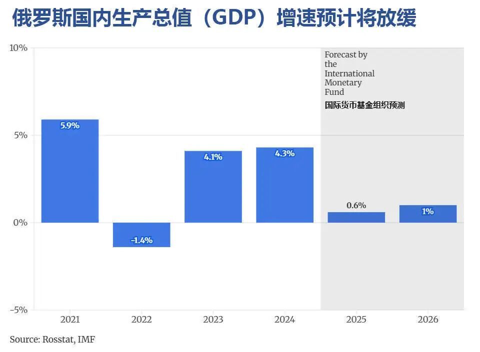 当前,俄通胀高企与实际工资增速下滑形成恶性循环:2025年实际工资增速约为3.5%,预计未来三年将进一步降至1.2%—1.7%,居民购买力持续缩水。同时,经济结构呈现严重“军工化”倾向,民用产业、基础设施建设、居民消费等领域被持续挤压,外资撤离、资本管制、人才流失形成长期失血闭环,难以通过内生动力实现经济复苏。